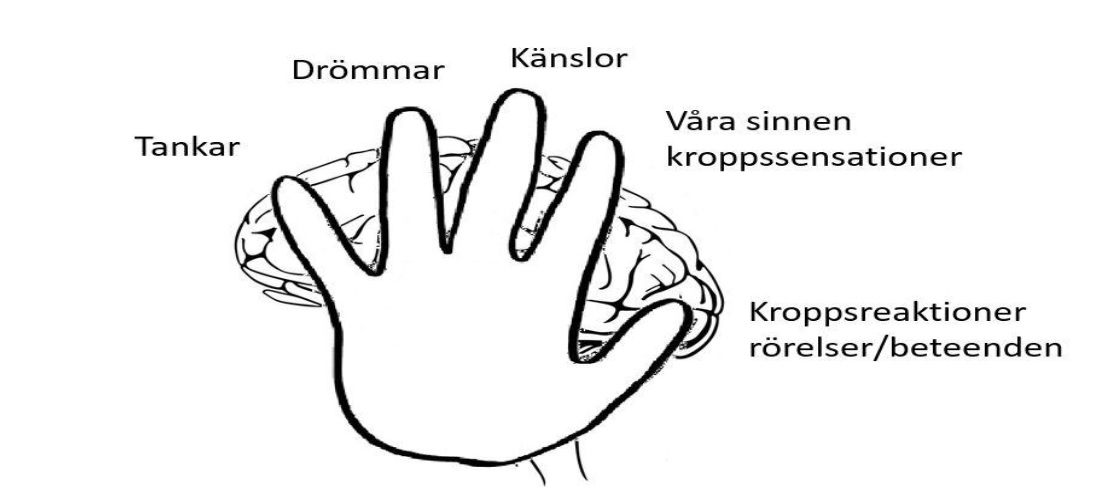 För att skapa allians med patienten omkring mitt arbetssätt utvecklade jag handmodellen. Med högerhanden och mina fem fingrar uppsträckta berättar jag följande: Nu skall jag berätta hur jag tänker och hur jag arbetar och när jag gjort det vill jag höra vad du tänker om detta. De olika fingrarna representerar 5 olika informationssystem som hjärnan försöker samordna. Fingrarna representerar också olika evolutionära skeden i vår arts utveckling.